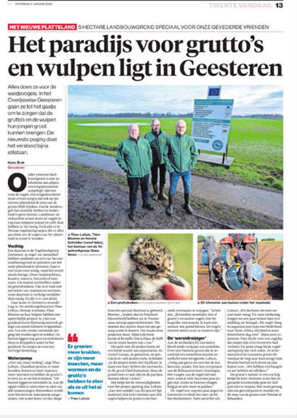 Prachtig verhaal in Tubantia over ons project weilandirrigatie. Dit voorjaar begint de proef van 5 jaren. Geen last meer van de droogte wanneer weidevogels broeden.