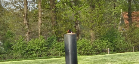 De vlag kan uit bij de Vogelwerkgroep Geesteren. We hebben de 3500e volger kunnen noteren. En dat is Hardrik Hinderiksen van de Manderveense Aardbei. De trotse ondernemer was onder de indruk van het redden van weidevogels en reekalfjes geraakt nadat zijn kinderen op de Grote Geesterse Molendag vogelhuisjes in elkaar mocht timmeren onder begeleiding van vrijwilligers van de Vogelwerkgroep. "Klasse, wat jullie doen", vat hij in enkele woorden samen. Toen we daarna samen de prachtige oogst van dit seizoen gingen bekijken ontdekten we nog een nieuwsgierige scholekster op de kap boven de aardbeien. (16 juli 2023)
