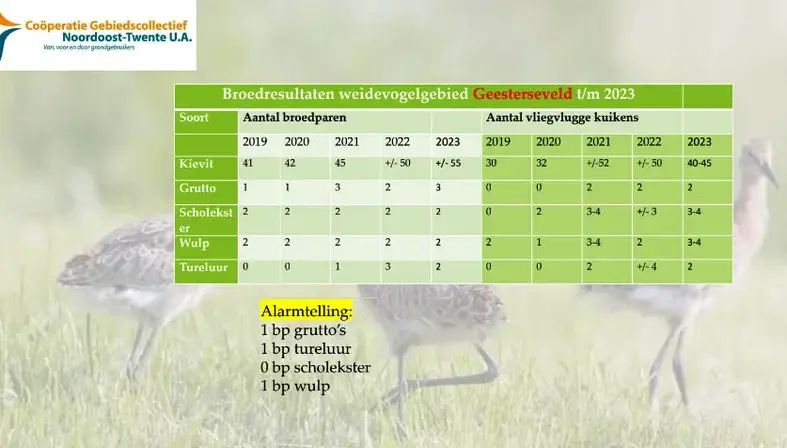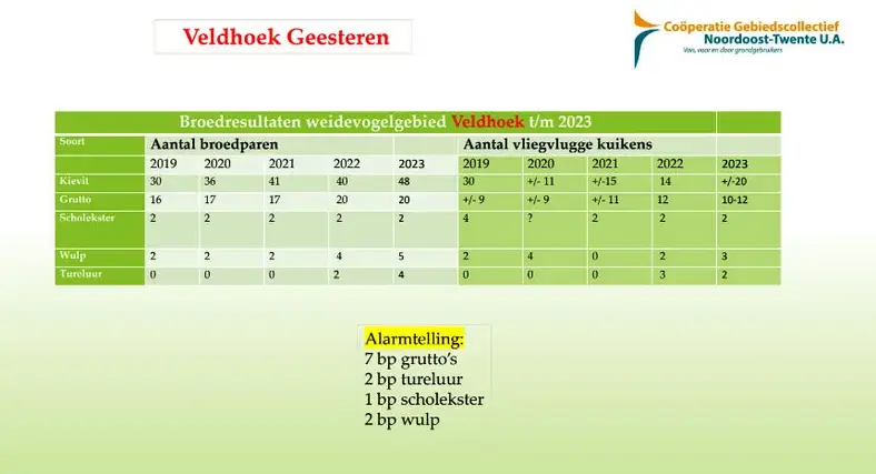 Het gaat goed met de resultaten van het aantal broedparen in de Veldhoek, tussen Manderveen, Langeveen en Geesteren.