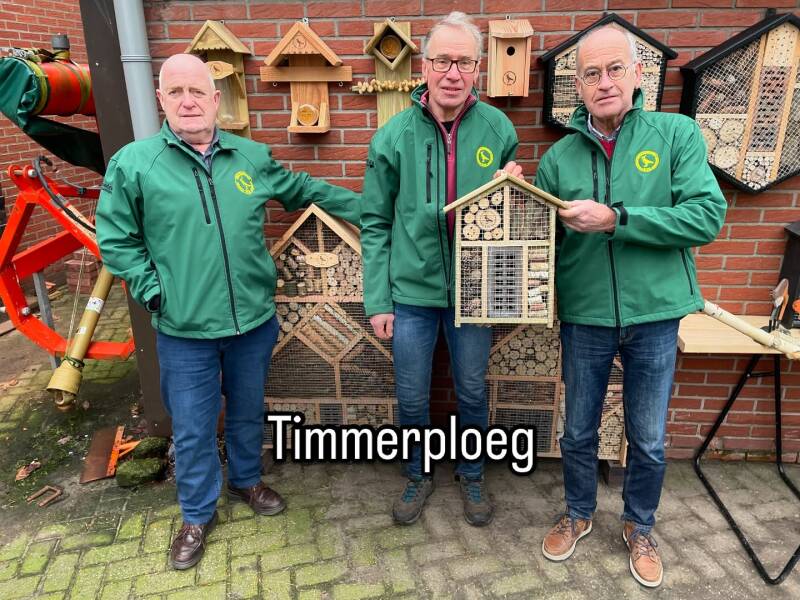 De timmerploeg maakt ook uilenkasten, nestkasten voor de boomklever, de kwikstaart, spreeuw, vleermuis, egel en zwaluw (een til). "U vraagt, wij draaien", zegt Theo Lohuis die de timmerploeg begeleidt. De ploeg bestaat uit Marcel Mensink, Harry Nobbenhuis, René Braakhuis, Harry Egberink, Gerard Lenferink en Henk Oude Wesselink.