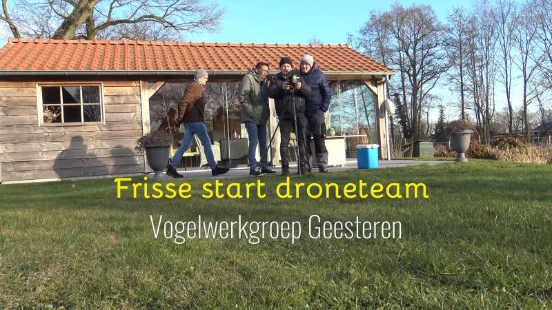 Het droneteam van de Vogelwerkgroep Geesteren heeft de draad weer opgepakt. Slecht weer gooide afgelopen weken keer op keer roet in het eten. Nu kon het. Rond het vriespunt met een matige noorden wind, stonden vier stoere leden van het tien koppige team paraat. Geen wolkje aan de lucht. Mooier kan bijna niet. Verwarmen doet de zon de bevroren aarde nog nauwelijks.