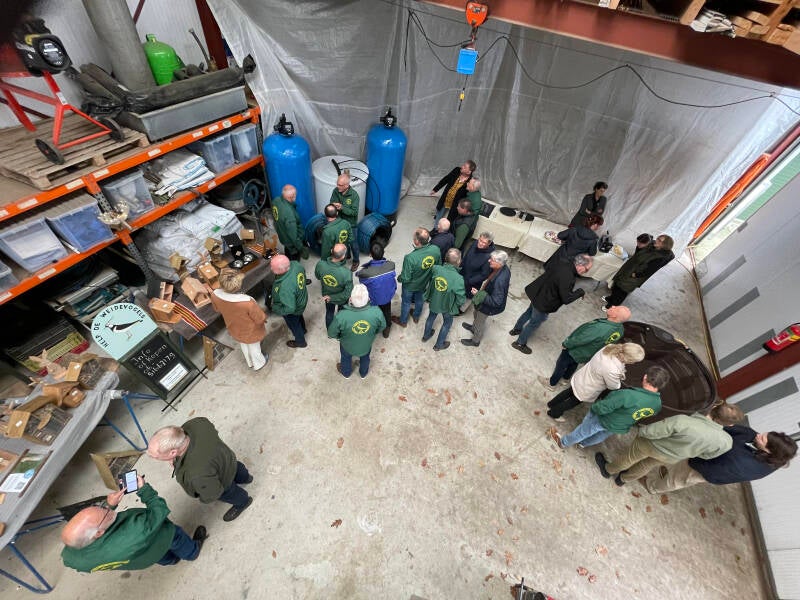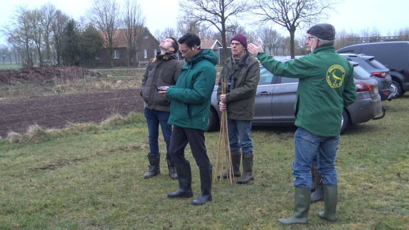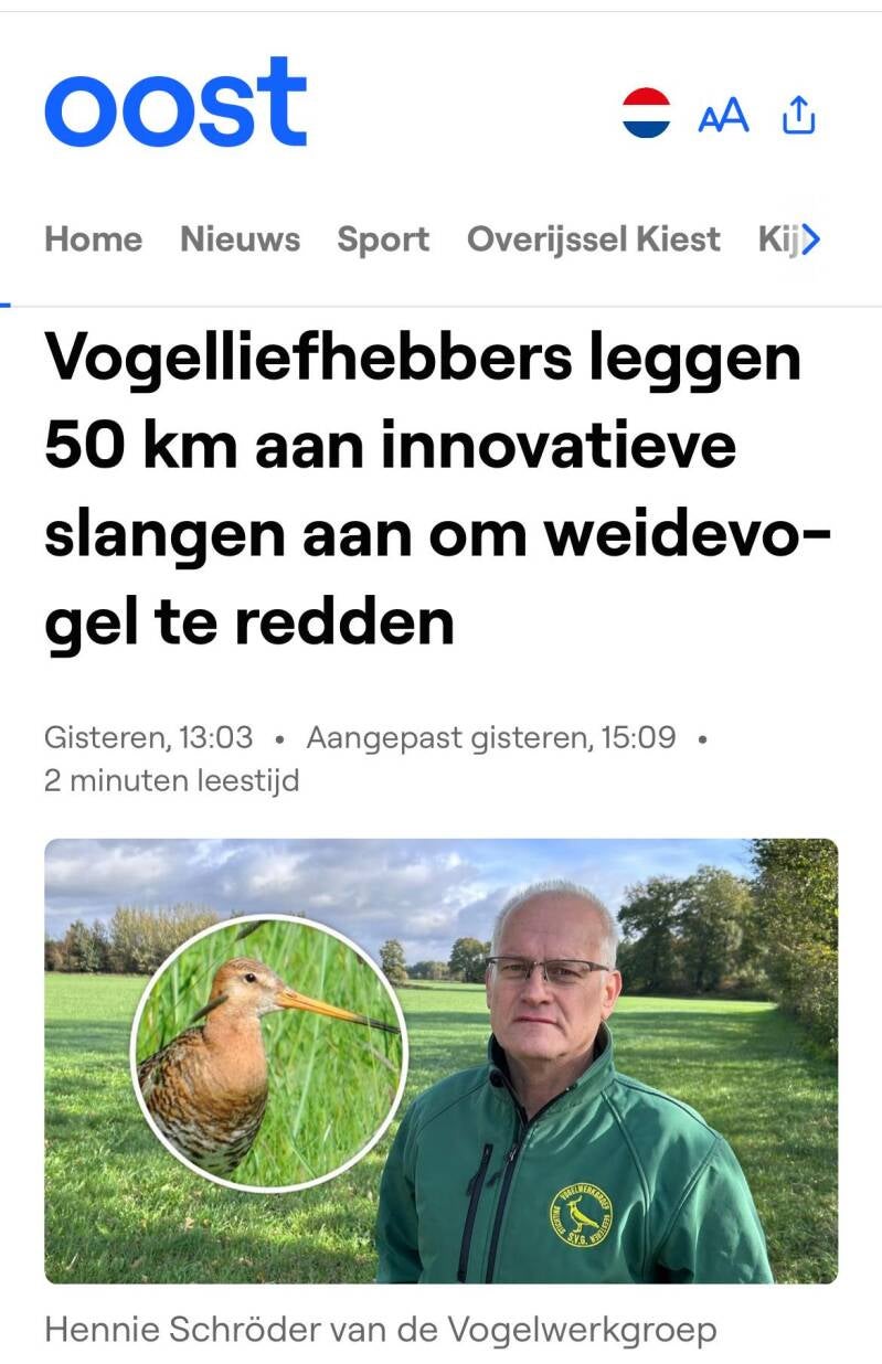 De dames herkenden veel agrariërs uit de Veldhoek waarmee we samenwerken om nesten en kuikens van grutto’s, kieviten, tureluurs, wulpen en scholeksters te beschermen bijvoorbeeld met schrikdraad. Ook legden vrijwilligers van de Vogelwerkgroep samen met het Gebiedscollectief Noord Oost Twente 6 plasdrassen met kruidenrijk gras aan. (Woensdag 5 maart 2025)