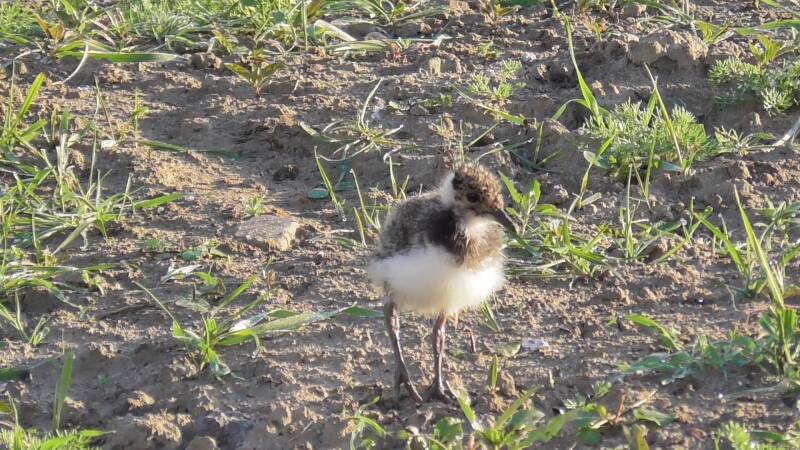 Het gaat ze heel goed af op de groene, deels gemaaide stroken gras tussen de wegen. De jonge diertjes zijn soms kleddernat door de dauw op het gras en moeten zich dan ook regelmatig opwarmen aan moeder kievit.
