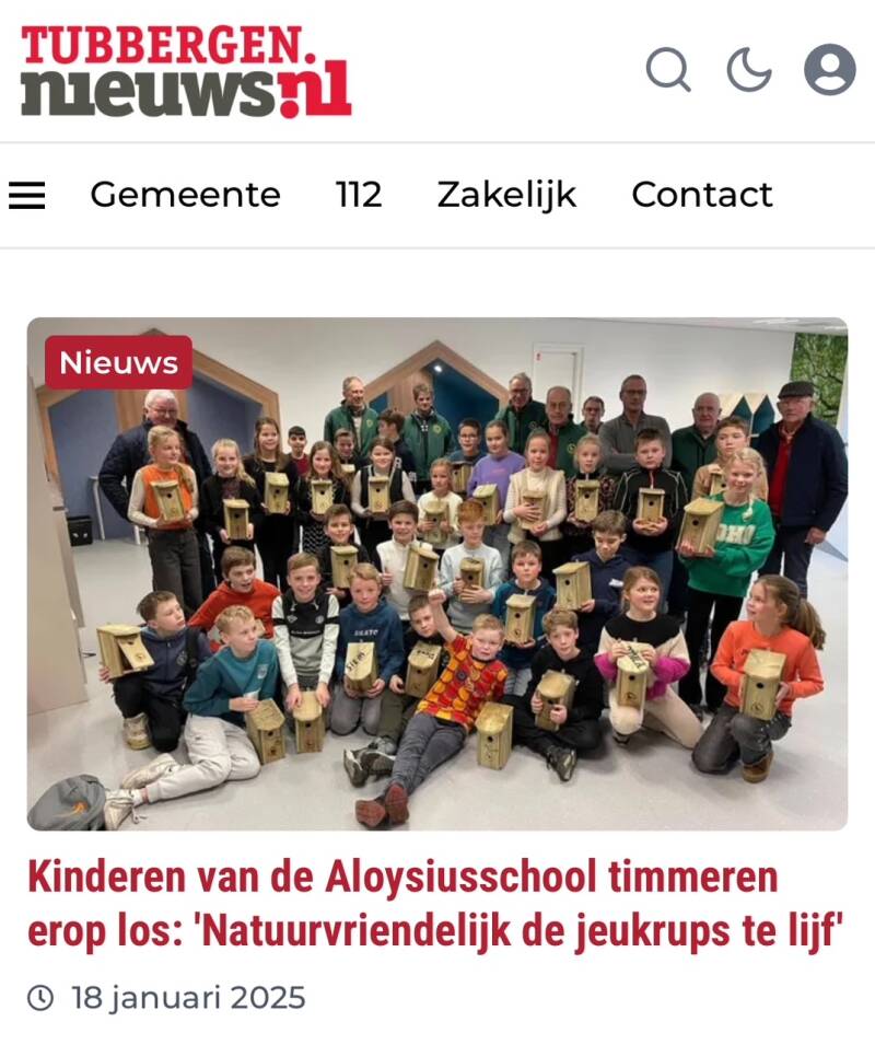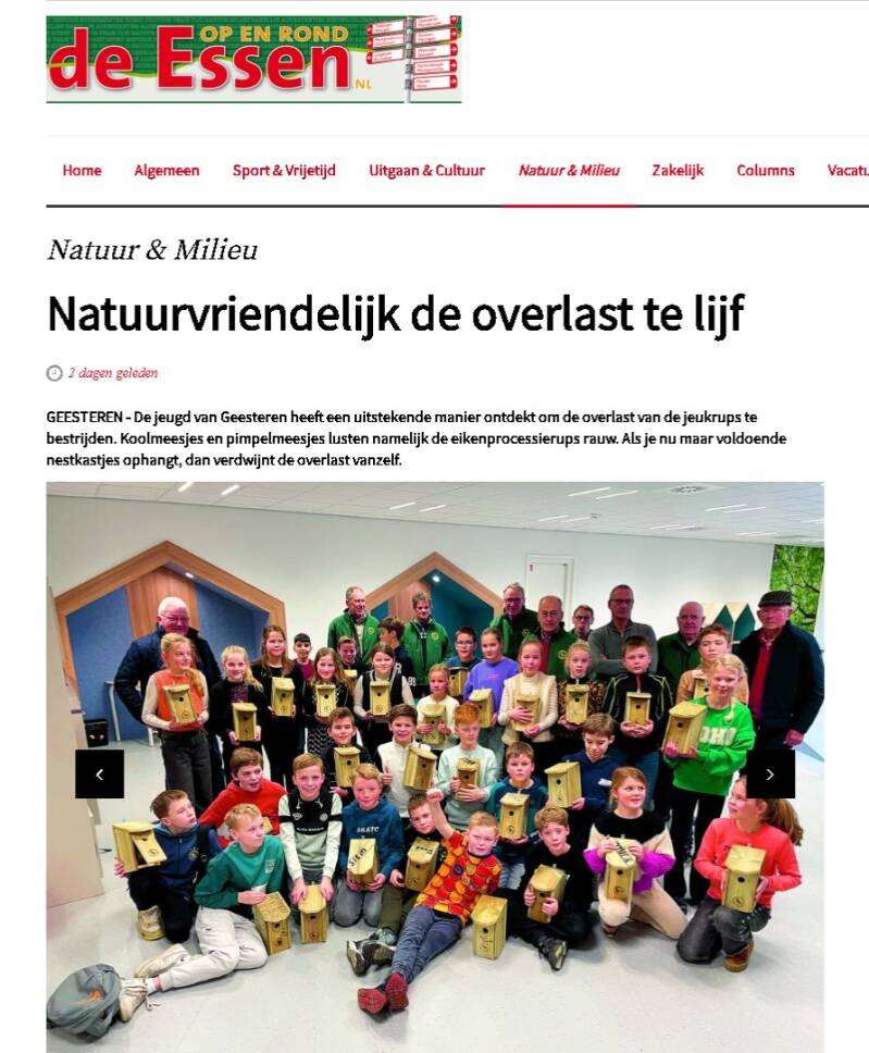 Een fantastische groep 7 in de gloednieuwe Aloysiusschool van Geesteren bouwde een hele reeks nestkastjes voor hun school en voor zichzelf. De Vogelwerkgroep Geesteren helpt zo de eikenprocessierups in toom te houden want de pimpelmees en de koolmees lusten ze rauw.
