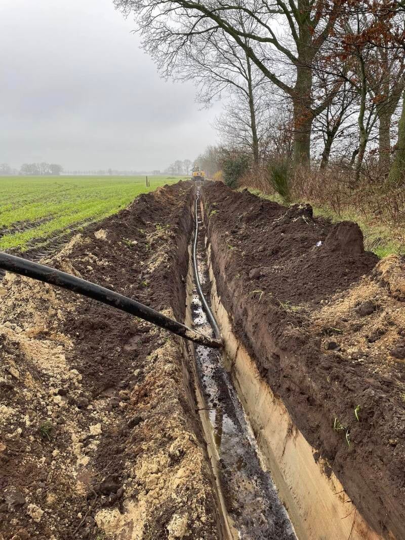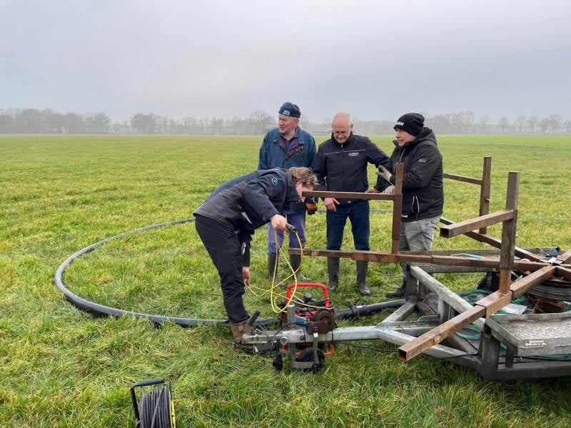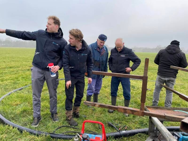Voor Boike Damhuis brak woensdagochtend 5 februari 2025 een bijzondere dag aan. Na 4, 5 jaar praten ging dan eindelijk de schop de grond in. Het regelen van afspraken, vergunningen en de financiering koste tijd. Maar de unieke pilot Weilandirrigatie begint nu echt vorm te krijgen.
