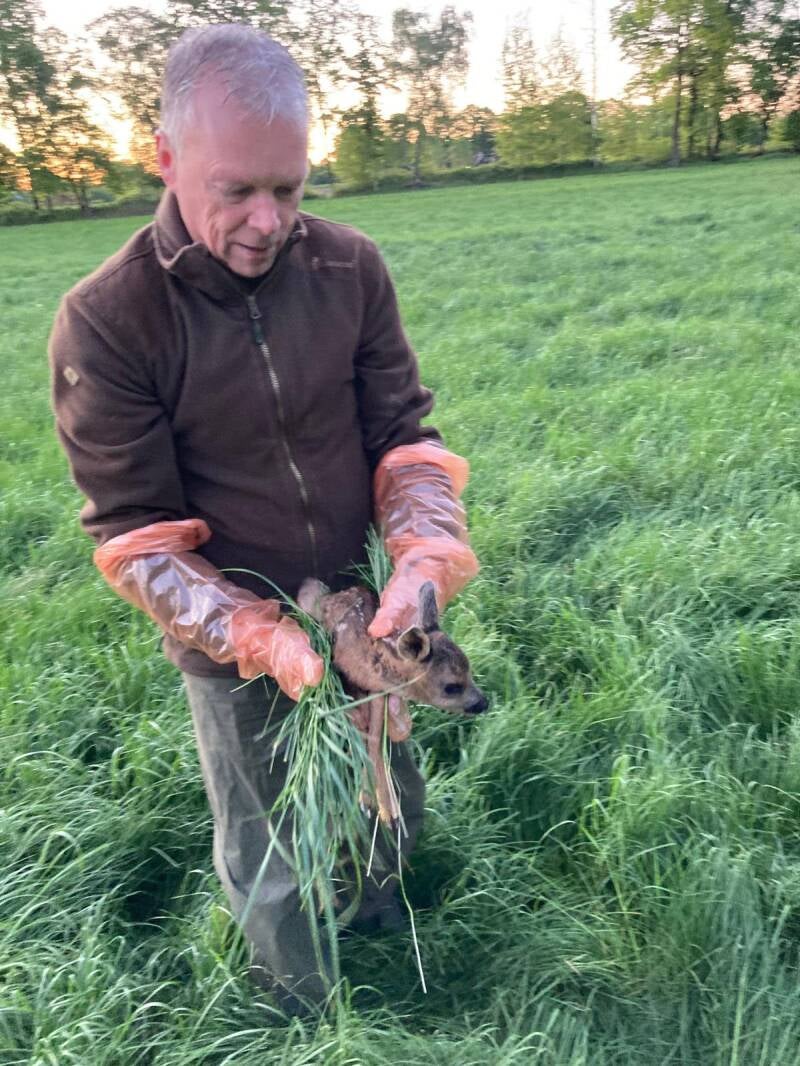 De dronepiloten maken zich ook sterk voor het redden van reekalfjes. Direct na het weidevogelseizoen volgt een periode waarin reekalfjes worden geboren. Ze liggen de eerste weken roerloos in het hoge gras. Alleen de moeder reegeit is soms zichtbaar in het weiland wanneer ze een of enkele keren per dag haar kalfje melk geeft. De afgelopen drie jaren zijn bijna 100 reekalfjes gevonden met de faunadrone van de Vogelwerkgroep Geesteren. (Dinsdag 29 oktober 2025)
