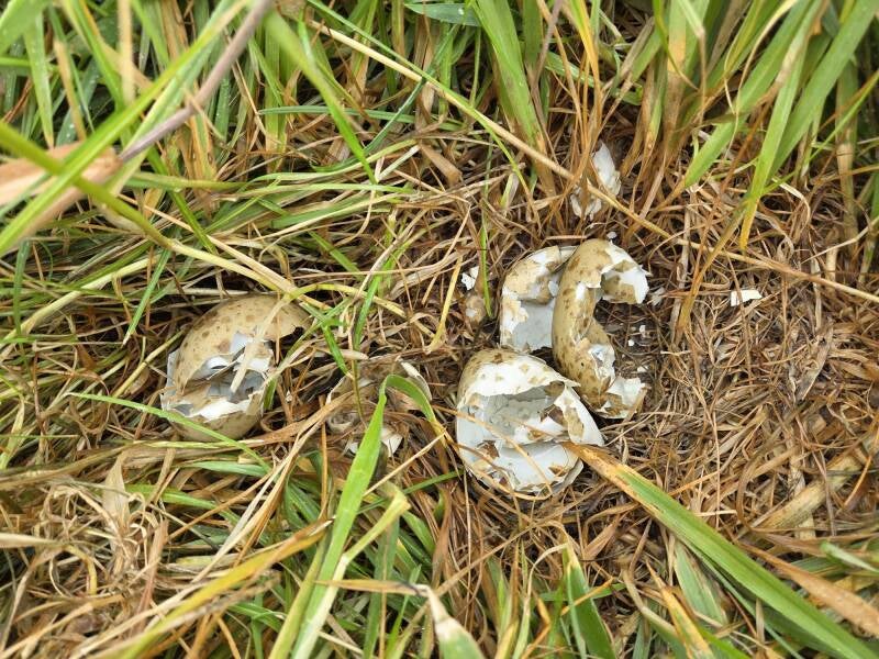 Slecht nieuws. Vanmorgen heeft dronepiloot Hennie Schröder een nestcontrole op afstand gedaan van de door de boer gevonden wulpennest. “Geen hotspot meer gevonden. Daarna er naartoe gelopen en dit is het resultaat. Zie foto’s. De grote vraag is: wat is hier gebeurd, wie heeft de 3 wulpeneieren kapot gemaakt?”