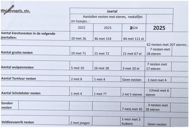 GeesterseveldTwee paartjes grutto's kregen geen enkel kuiken vliegvlug in 2024 in het Geesterseveld. Wel zaten er 40 broedpaartjes kieviten.