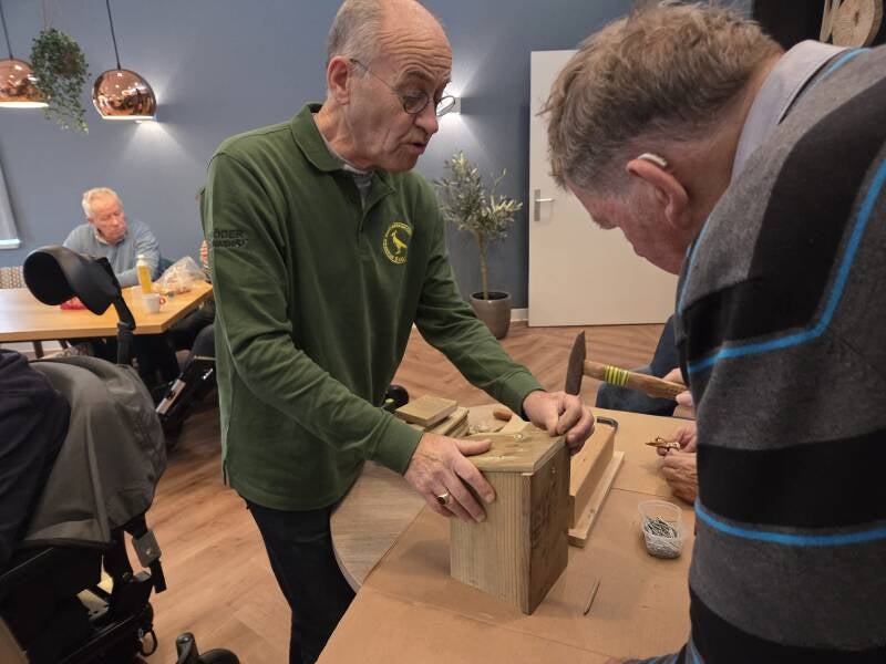 De hechte groep vrijwilligers bezoekt basisscholen met een aanhanger vol bouwpakketten voor nestkastjes. Samen met de jeugd timmeren de vrijwilligers op een middag tientallen nestkasten in elkaar. De kinderen mogen hun zelf gebouwde kunstwerkjes, voorzien van hun namen, gratis meenemen naar huis. (Vrijdag 14 februari 2025)
