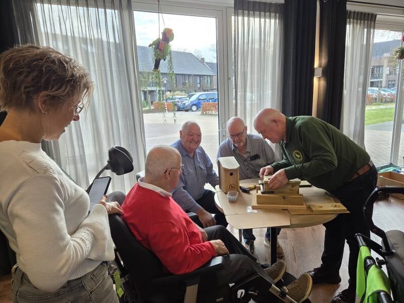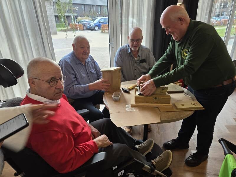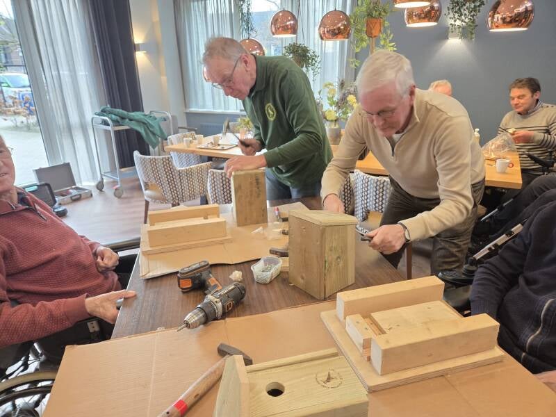 Een fantastische timmermiddag hadden bewoners van de Meulenhof van TMZ in Tubbergen. Onze timmerploeg bouwde vanmiddag samen met bewoners een reeks nestkastjes. De timmerploeg doet dit regelmatig met leerlingen van scholen in de omgeving. Maar nu dus ook met ouderen.