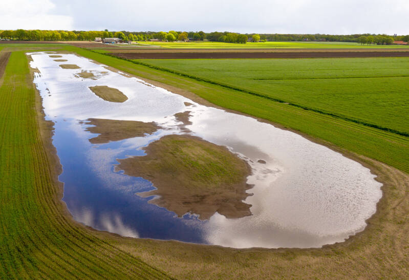 Met het geld dat de Vogelwerkgroep Geesteren via de actie Red de Grutto inzamelde konden we onder meer plasdrassen aanleggen. Links, in het Huyerenscheveld, kwam de grootste van de 6 plasdrassen rond Geesteren.